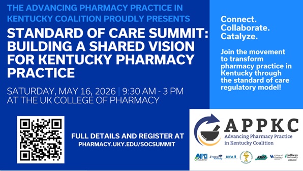 Join us at the University of Kentucky College of Pharmacy on May 16th, 2026, from 9:30am to 3pm, for a pivotal gathering to explore the Standard of Care regulatory model as we inspire and educate pharmacy stakeholders to help engage in this grassroots movement.